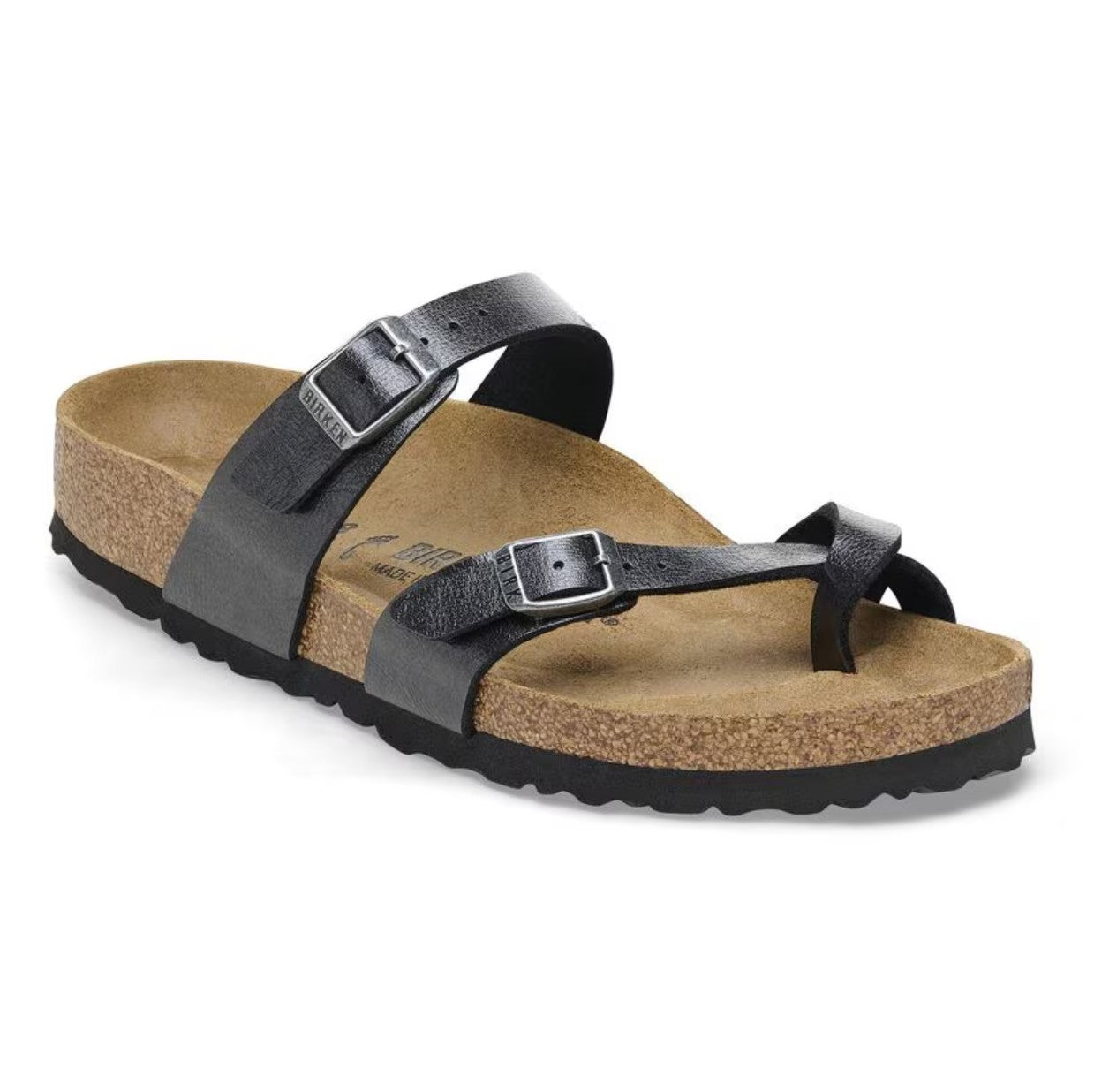 Supremely comfortable with sophisticated, crisscross straps, the Mayari redefines the thong sandal with a single toe loop. A statement finish adds a special sheen to the everyday favorite. Complete with classic BIRKENSTOCK design elements, like adjustable buckle closures and a contoured footbed for the ultimate in support.