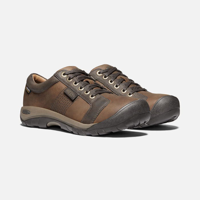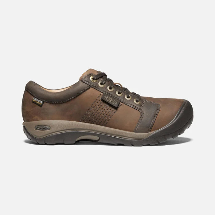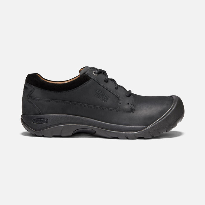 Here's the waterproof premium leather version of our KEEN Austin casual shoes with a suede collar for cushioned comfort. Breathable mesh lining and supportive insole keeps you going from commute to cocktails.